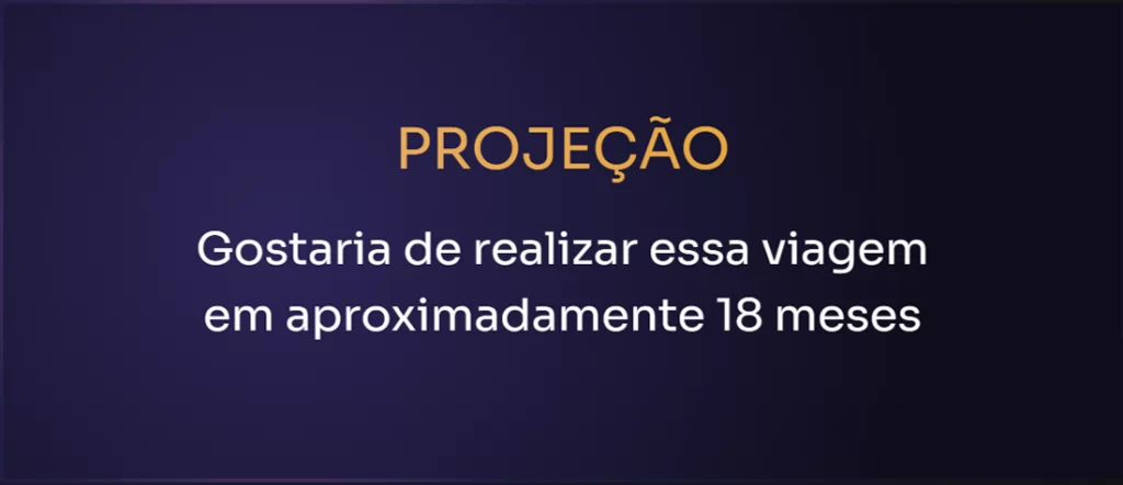 Gostaria de realizar essa viagem em aproximadamente 18 meses